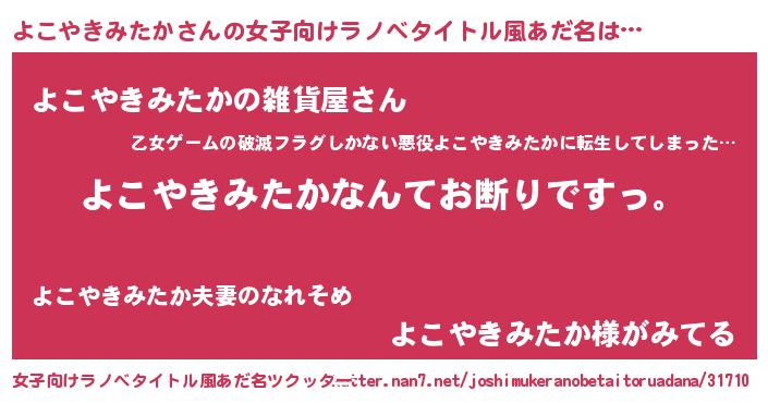 | 意味不明あだ名 | 『自称よこやきみたか』 |