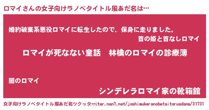 | 男性向けラノベタイトル風あだ名 | 『魔弾の王とロマイ』『ロマイスレイヤー』 |