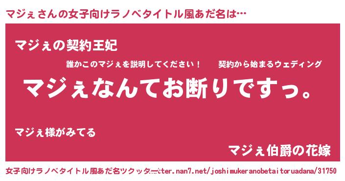 | 男性向けラノベタイトル風あだ名 | 『魔法科高校のマジぇ』 |