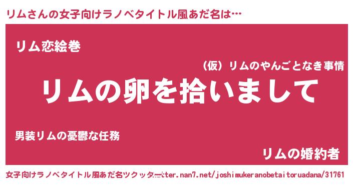 | 男性向けラノベタイトル風あだ名 | 『ダンジョンにリムを求めるのは間違っているだろうか』 |