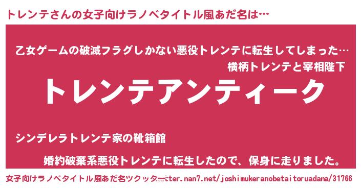 | 男性向けラノベタイトル風あだ名 | 『魔法科高校のトレンテ』 |