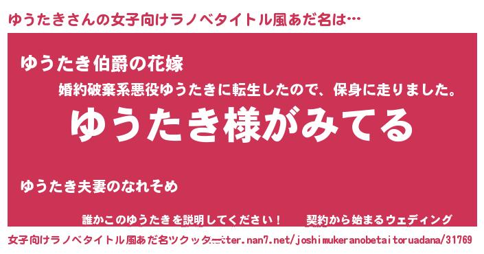 | ポケモン風あだ名 | 『ヒユウタキ』『ユウタダネ』 |