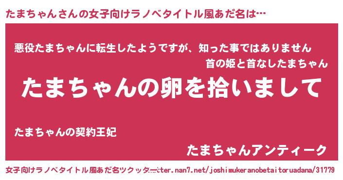 | 男性向けラノベタイトル風あだ名 | 『ダンジョンにたまちゃんを求めるのは間違っているだろうか』 |