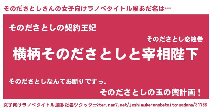 | 男性向けラノベタイトル風あだ名 | 『そのださとしに滅ぼされるだけの簡単なお仕事です』 |