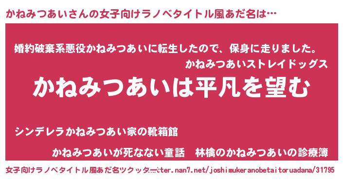 | 胡散臭い通販商品みたいなあだ名 | 『信頼と実績のペンダント…その名も「かねみつあい」』 |