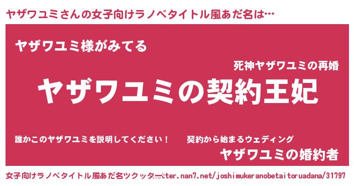 | 胡散臭い通販商品みたいなあだ名 | 『来世でも幸せになれる健康食品…その名も「ヤザワユミ」』 |