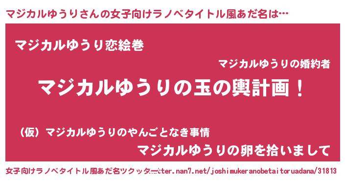 | 男性向けラノベタイトル風あだ名 | 『転生したらマジカルゆうりだった件』 |