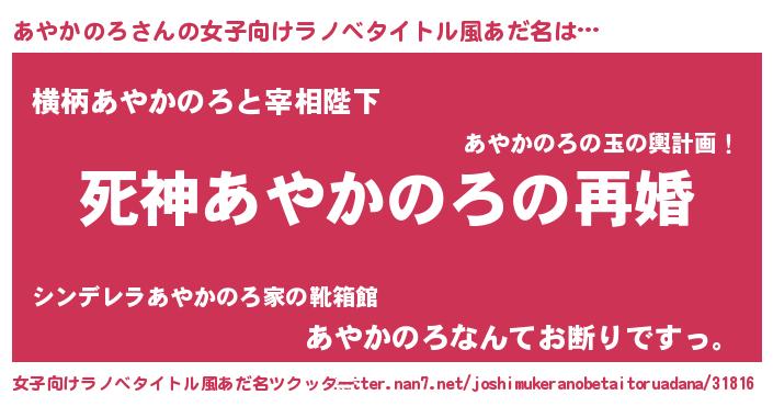 | ヒーロー風カッコイイあだ名 | 『慈愛の使者あやかのろ』『幻影騎士アヤ』 |