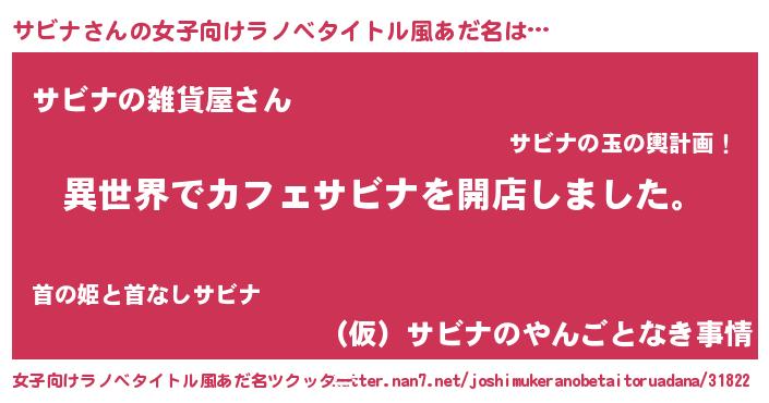 | ファンタジー風あだ名 | 『サビディッシュ』『エターナルサビナー』 |