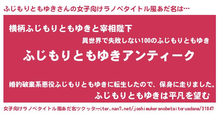 | 男性向けラノベタイトル風あだ名 | 『魔法科高校のふじもりともゆき』 |