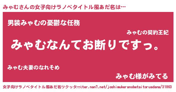 | 男性向けラノベタイトル風あだ名 | 『魔法科高校のみゃむ』 |