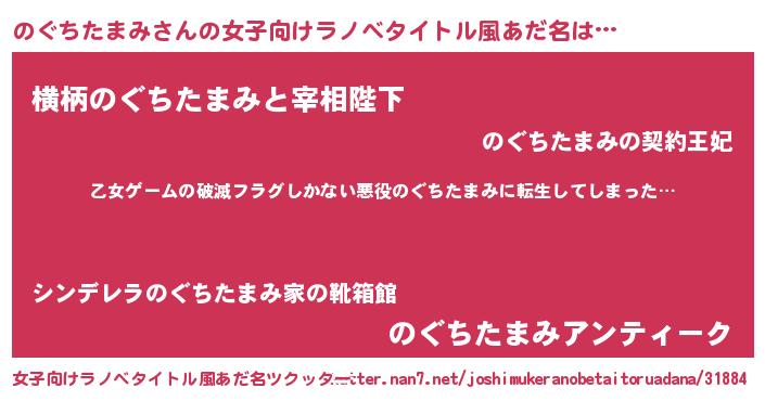 | 男性向けラノベタイトル風あだ名 | 『この素晴らしい世界にのぐちたまみを!』 |