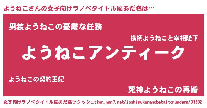 | 胡散臭い通販商品みたいなあだ名 | 『テレビで話題の高麗人参…その名も「ようねこ」』 |