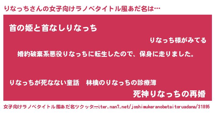 | 男性向けラノベタイトル風あだ名 | 『リナッチスレイヤー』 |