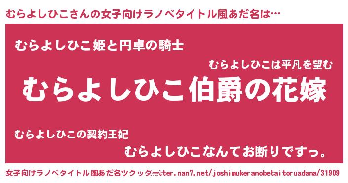 | 恥ずかしいあだ名 | 『むらっちょ』『プリティーむらよしひこ』 |