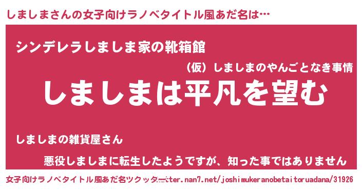 | 胡散臭い通販商品みたいなあだ名 | 『信頼と実績のペンダント…その名も「しましま」』 |