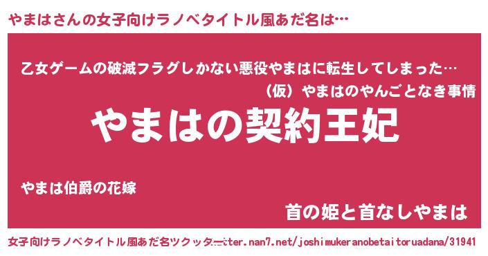 | 男性向けラノベタイトル風あだ名 | 『やまはという概念が存在しない退屈な世界 』 |