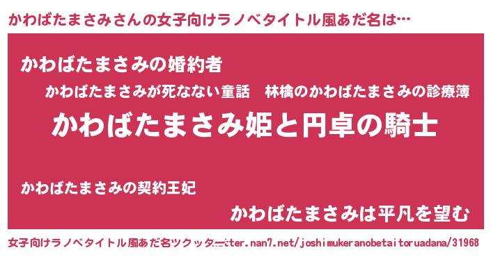 | 胡散臭い通販商品みたいなあだ名 | 『モテモテ間違いなしブレスレット…その名も「かわばたまさみ」』 |