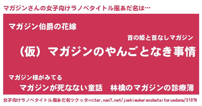 | 男性向けラノベタイトル風あだ名 | 『マガジンの憂鬱』『魔弾の王とマガジン』 |