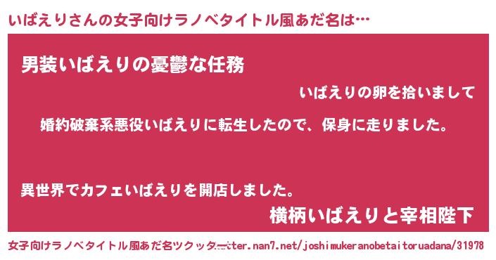 | 男性向けラノベタイトル風あだ名 | 『イバエリスレイヤー』 |