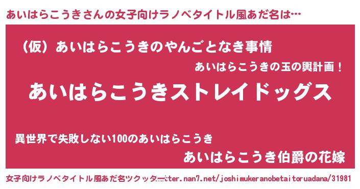 | 意味不明あだ名 | 『自称あいはらこうき』 |