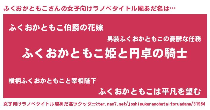 | ヒーロー風カッコイイあだ名 | 『スーパーフクオカトモコ』 |