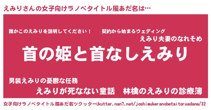| 男性向けラノベタイトル風あだ名 | 『はたらくえみりさま!』 |