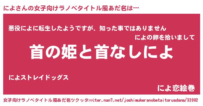 | 男性向けラノベタイトル風あだ名 | 『はたらくによさま!』 |