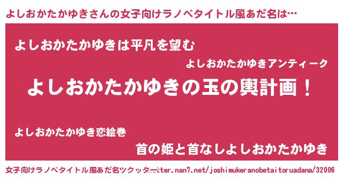 | 料理風あだ名 | 『よしおかたかゆきとほうれんそうの和風グラタン』 |