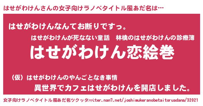 | ヒーロー風カッコイイあだ名 | 『慈愛の使者はせがわけん』 |