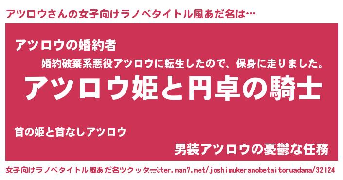 | ファンタジー風あだ名 | 『アツフェル』『エターナルアツロウー』 |