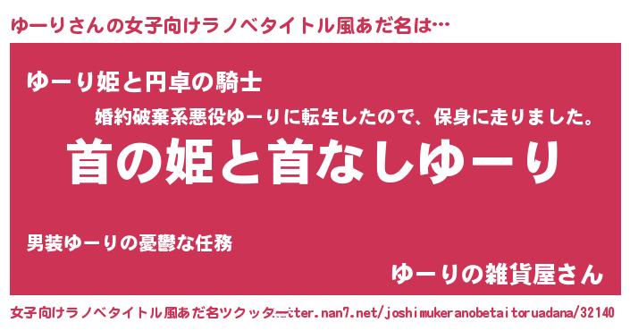 | 男性向けラノベタイトル風あだ名 | 『はたらくゆーりさま!』 |