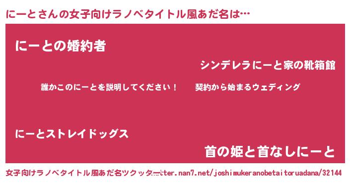 | ファンタジー風あだ名 | 『ニーフェル』『エターナルニートー』 |