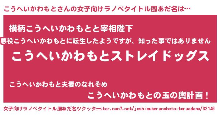| 肩書あだ名 | 『こうへいかわもと総統』 |