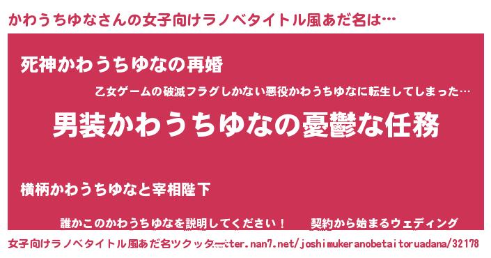| 男性向けラノベタイトル風あだ名 | 『うちのかわうちゆなが世界を掌握している!』 |