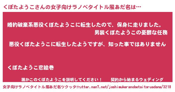 | 男性向けラノベタイトル風あだ名 | 『この素晴らしい世界にくぼたようこを!』 |
