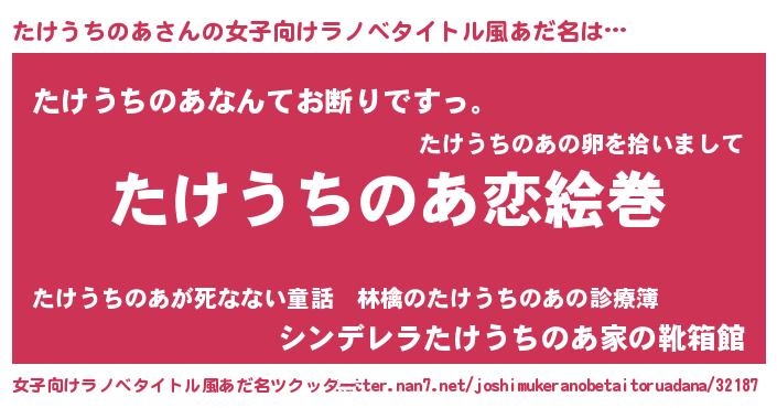 | ヘコむあだ名 | 『たけを』『たけにゅー』『牛乳』 |