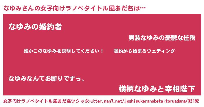 | ファンタジー風あだ名 | 『ナユフェル』『エターナルナユミー』 |