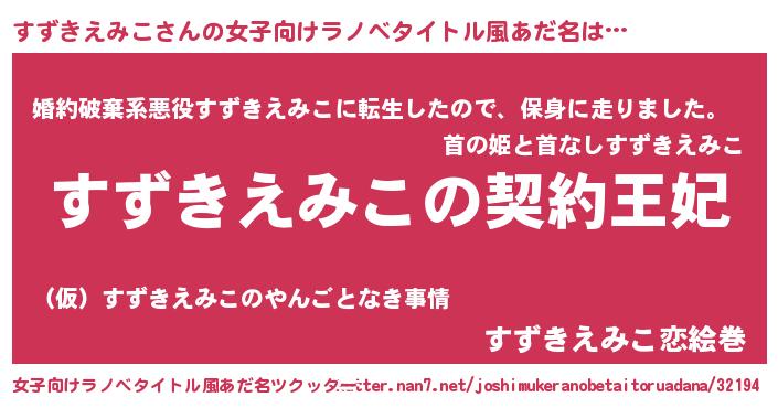 | 男性向けラノベタイトル風あだ名 | 『誰もが恐れるあのすずきえみこが、ぼくの専属メイドになるようです。』 |