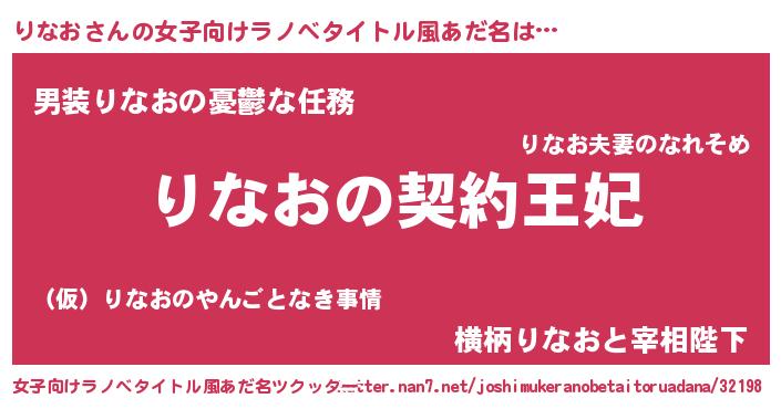 | 男性向けラノベタイトル風あだ名 | 『誰もが恐れるあのりなおが、ぼくの専属メイドになるようです。』 |