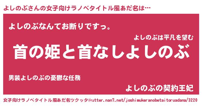 | 男性向けラノベタイトル風あだ名 | 『はたらくよしのぶさま!』 |
