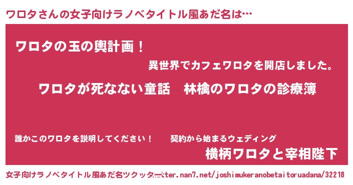 | ヘコむあだ名 | 『ワロタ(笑)』『ワロにー』『ワロを』 |