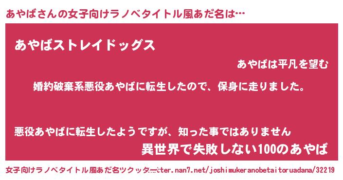 | 胡散臭い通販商品みたいなあだ名 | 『ガンによく効くアガリクス…その名も「あやば」』 |