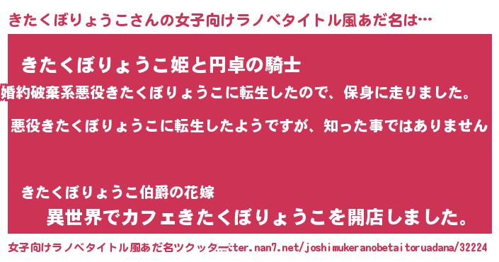 | 男性向けラノベタイトル風あだ名 | 『この素晴らしい世界にきたくぼりょうこを!』 |