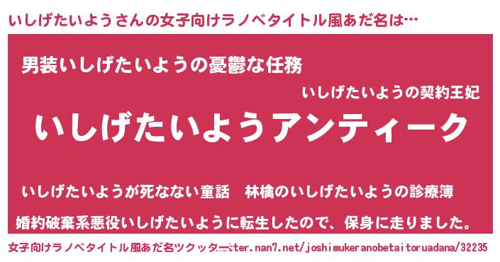 | 胡散臭い通販商品みたいなあだ名 | 『テレビで話題のアガリクス…その名も「いしげたいよう」』 |