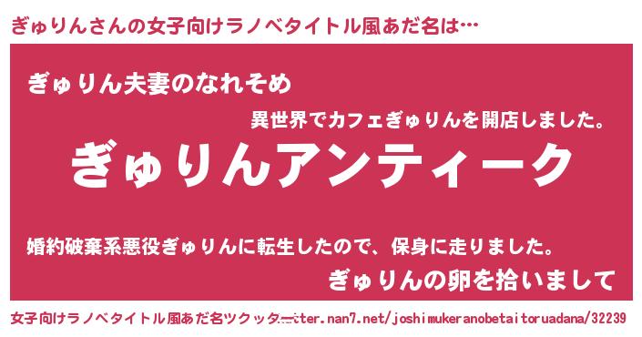 | ヘコむあだ名 | 『ぎゅっぺ』『ぎゅりん(遠い目)』 |