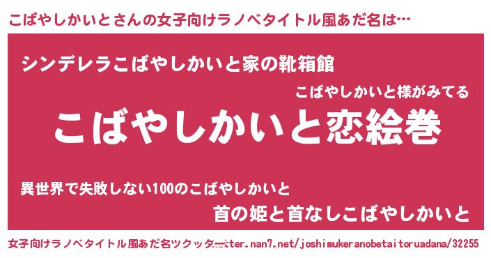 | 男性向けラノベタイトル風あだ名 | 『ノーゲーム・ノーコバヤシカイト』 |