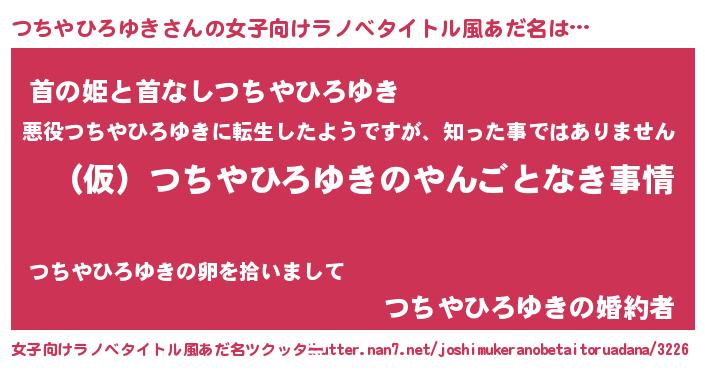 | 男性向けラノベタイトル風あだ名 | 『つちやひろゆきの憂鬱』 |