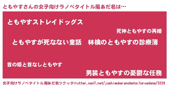 | 意味不明あだ名 | 『住所不定無職ともやす(89歳)』 |