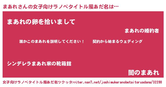 | 胡散臭い通販商品みたいなあだ名 | 『億万長者になれるブレスレット…その名も「まあれ」』 |